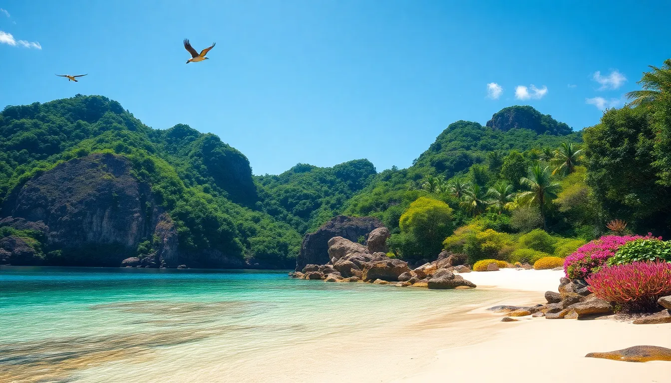The island’s unique geographical location contributes to its striking natural beauty. Surrounded by coral reefs, the waters teem with marine life. Tropical plants, such as palm trees and colorful flowers, create a vibrant atmosphere throughout the island.